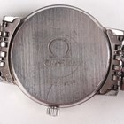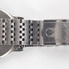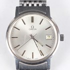 An Omega stainless steel circular cased gentleman's bracelet wristwatch, Ref. 136.0104, circa 1979, the signed and jewelled 1030 caliber manual wind movement numbered '44532209', the signed silvered dial with baton hour markers and date aperture, the signed case back numbered '136 0104', the tapered link bracelet with signed foldover clasp, case width 3.4cm.