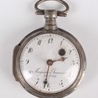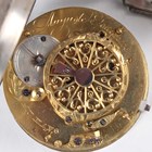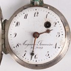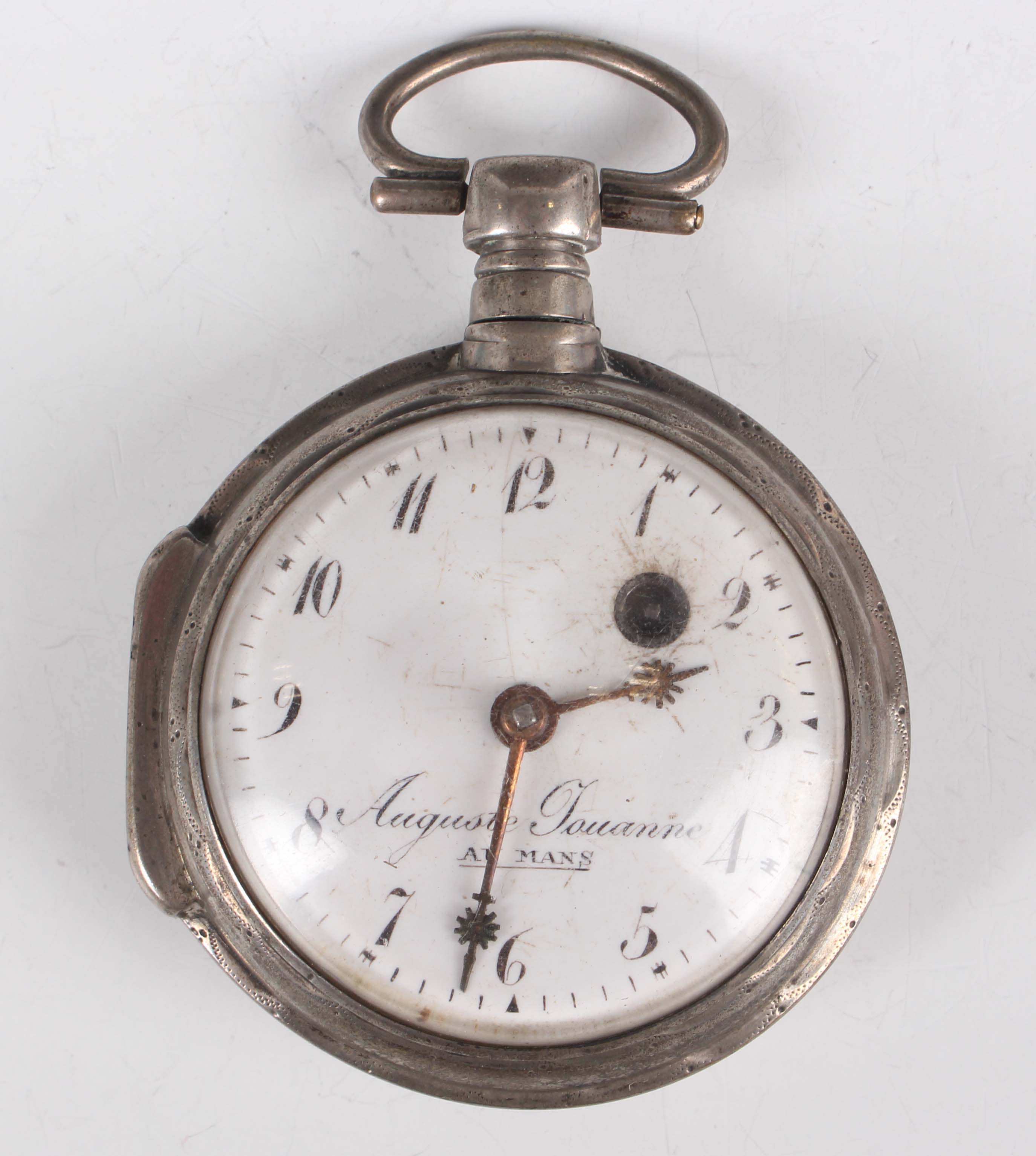 A late 18th century French silver cased keywind open-faced gentleman's pocket watch, the gilt fusee movement with verge escapement and pierced and engraved balance cock and detailed 'Auguste Jouanne Au Mans', the white enamelled convex dial with black Arabic hours and similarly signed, case diameter 4.9cm.