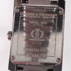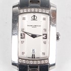 A Baume & Mercier Genève Hampton stainless steel and diamond set lady's bracelet wristwatch, Ref. 65503, with quartz movement, the signed white dial with diamond set hour markers and date aperture, the rectangular case with two horizontal rows of eight circular cut diamonds, the case back numbered '4406238', the link bracelet with double foldover clasp, case width 2.2cm, with case and outer card box.