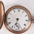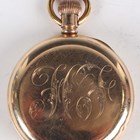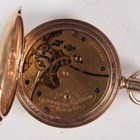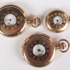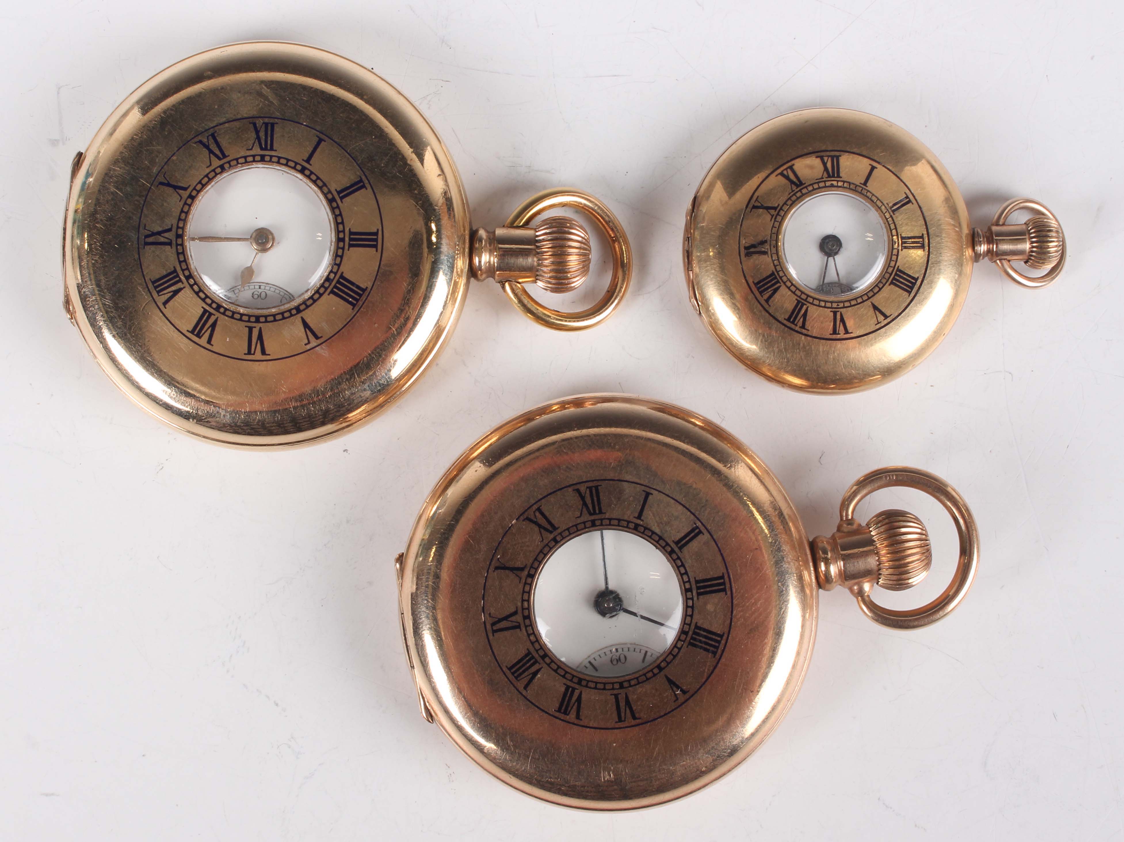 Two Waltham gilt metal half hunting cased keyless wind gentleman's pocket watches, each with signed jewelled lever movement, case diameters 5cm, together with a gilt metal half hunting cased lady's fob watch, case diameter 3.4cm.