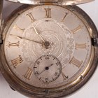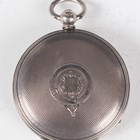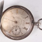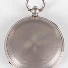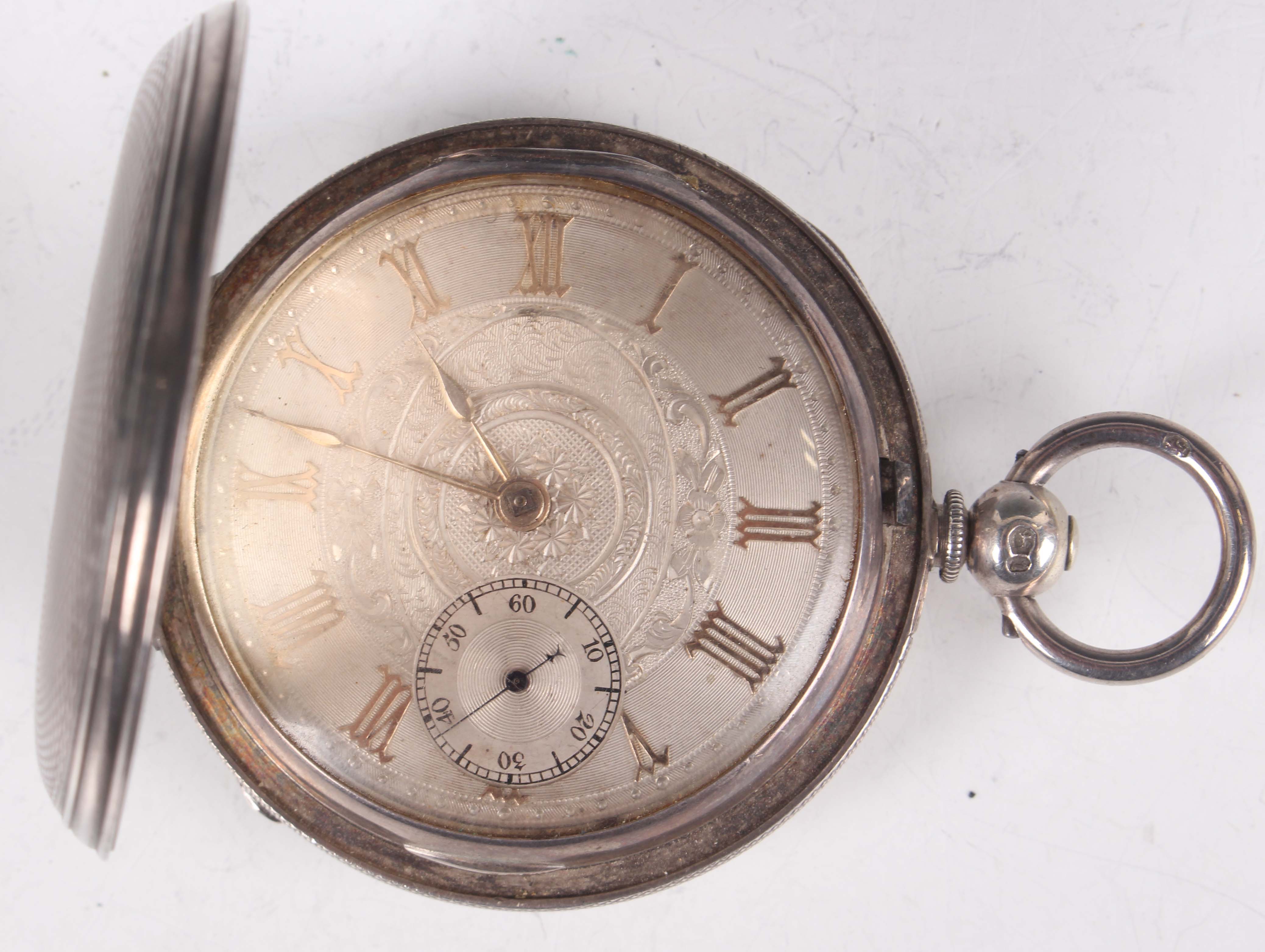 A Victorian silver hunting cased keywind gentleman's pocket watch, the unsigned gilt fusee lever movement numbered '11569', with gilt metal dust cover, the silvered dial with applied gilt gothic hour numerals and subsidiary seconds, the case with engine turned decoration, London 1864, case diameter 5cm, total weight 114.9g.