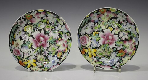 A group of Chinese blue and white porcelain, 18th century and later, comprising a Batavian export ware bowl, painted with fish, diameter 12.2cm, an ovoid jar, painted with prunus, height 12.1cm, a cylindrical vase, painted with figures and birds, height 15.1cm, a ginger jar and a globular pot, height 5.7cm (some faults).