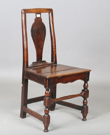 An early 20th century stained oak monk's bench, height 96cm, width 77cm, depth 46cm, together with a late Victorian oak buffet, height 120cm, width 107cm, depth 46cm (faults).
