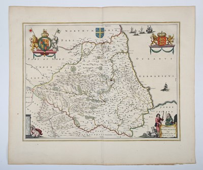 Christopher Saxton and John Speed - Norfolk, a Countie Florishing & Populous Described and Devided with the Armes of Such Noble Families as have Borne the Titles Therof', engraving published by Thomas Bassett and Richard Chiswell circa 1676, with later colour, 39cm x 51cm, framed and double glazed within a burr walnut frame. Provenance: Sotheby's, The Leverhulme Collection, 26-28th June 2001, lot no. 1023, a catalogue for the auction is included in the lot.